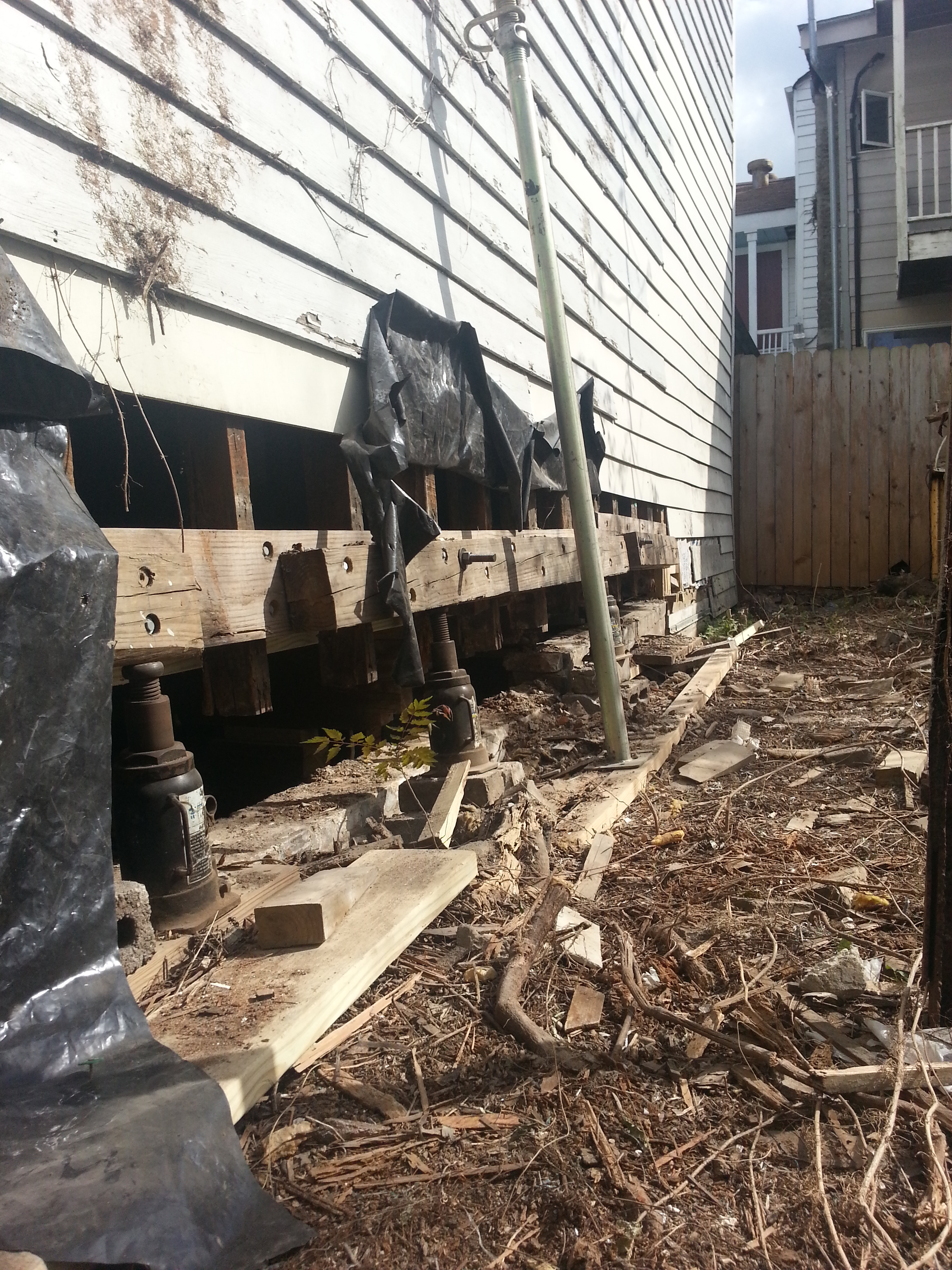 Rotted sill and weak brick chainwall.