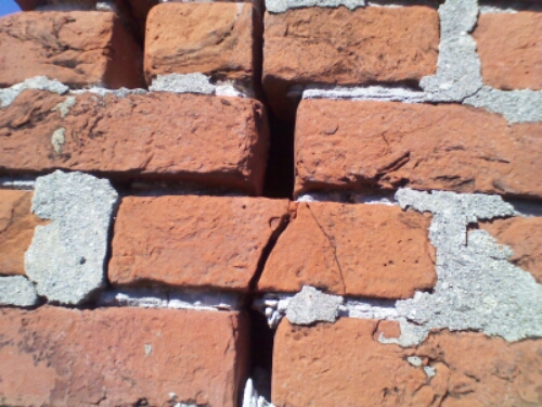 Repoint the brick, reinforce the chimney with steel angle, and then draw it together with metal pallet strapping.