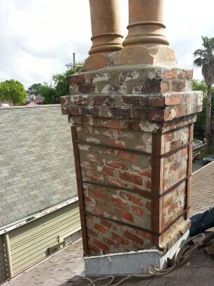 This chimney was in bad shape but the customer didn’t want to rebuild it. So, I came up with this solution: