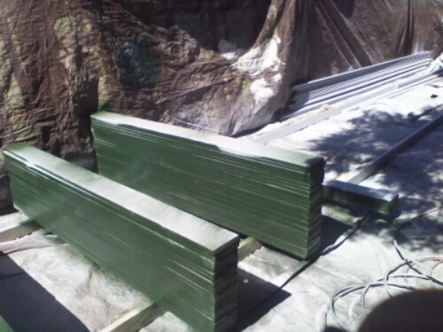 First test fit of new ridge board. 2 foot Vent area between the rafters is marked.