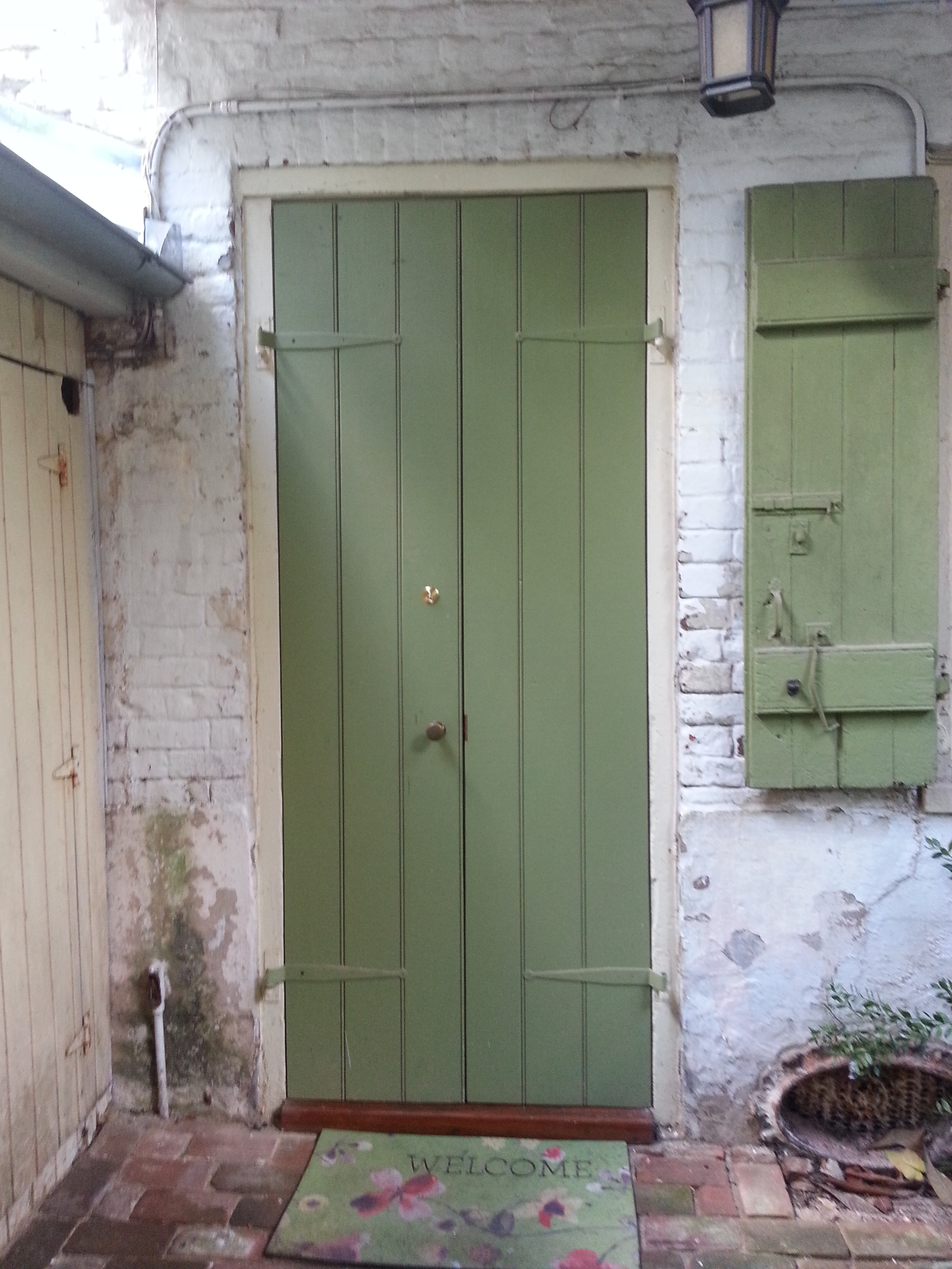 New batten shutters to match the original style. Owner wanted to be able to use the shutters as an entry door, so I installed the knob and lockset.
