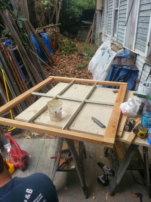 I designed this fume hood from some wood salvage from a garage demo. Time constraints forced us to finish it on site.